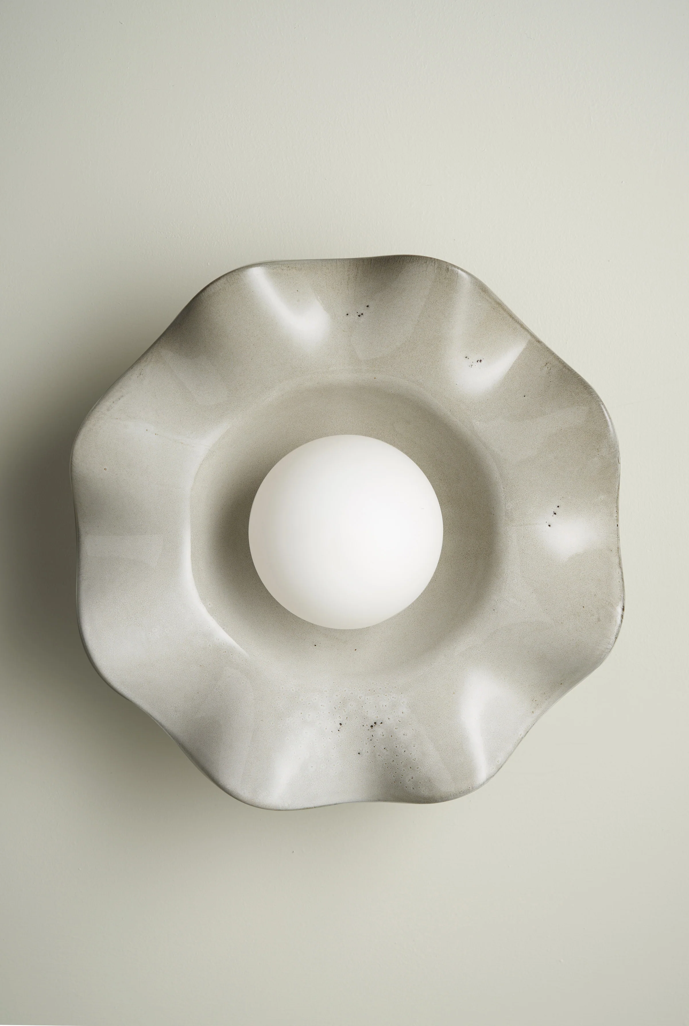 A quirky combination of modern, crafted clay and whimsical frills, our new Pearl Wall sconce is available in 2 unique clay finishes, and our favourite glazes.